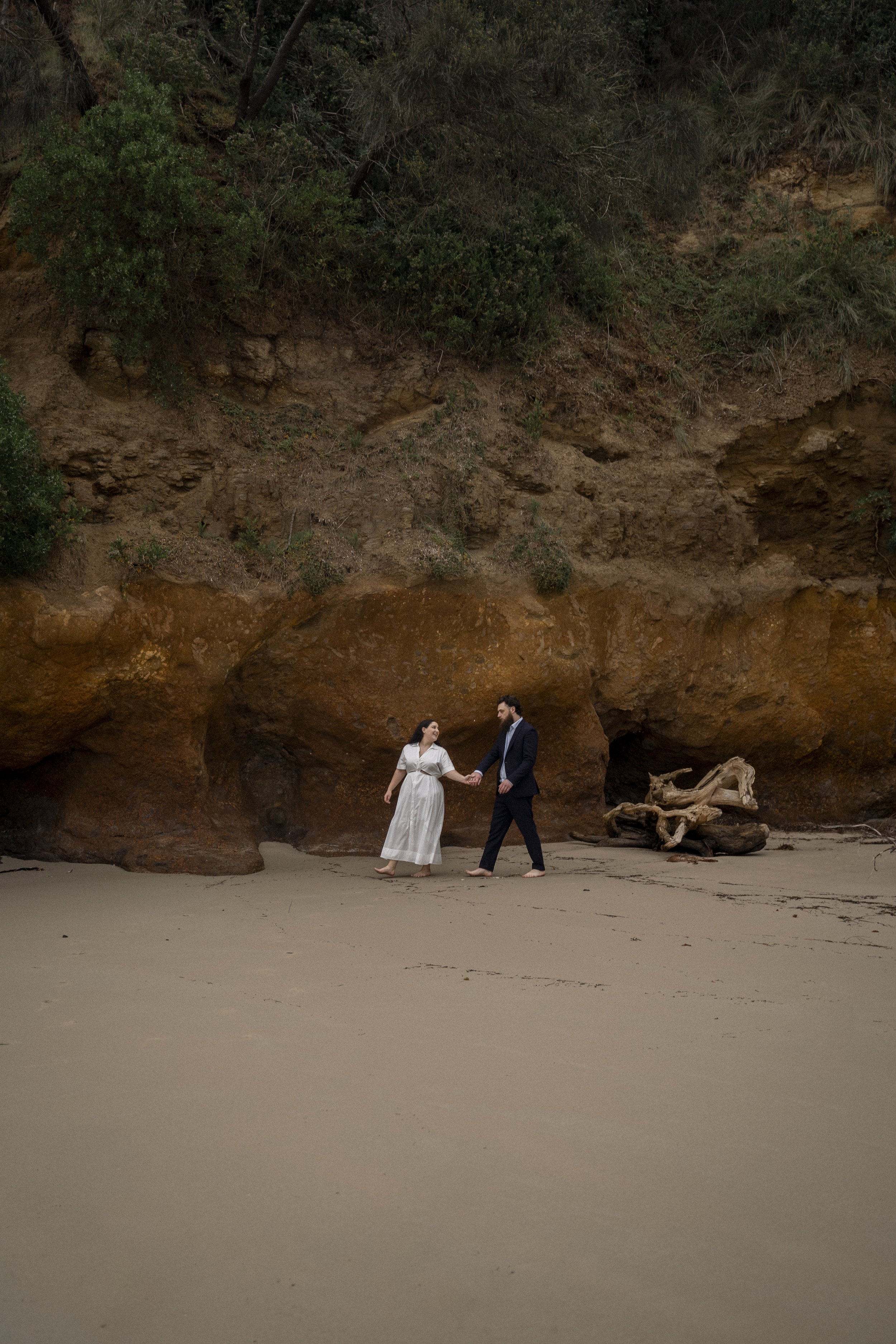 Anna and Bill placed their trust in me to choose the location for their engagement shoot, and I decided on the picturesque Shoreham Foreshore Reserve. The brief was clear – we aimed for a session that was fun, filmy, and candid. Our goal was to capture shots of the couple savouring each other's company at the beach, and I believe we successfully accomplished just that.